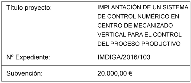 Subvención: Implantación nuevo sistema de mecanizado de alta eficiencia…